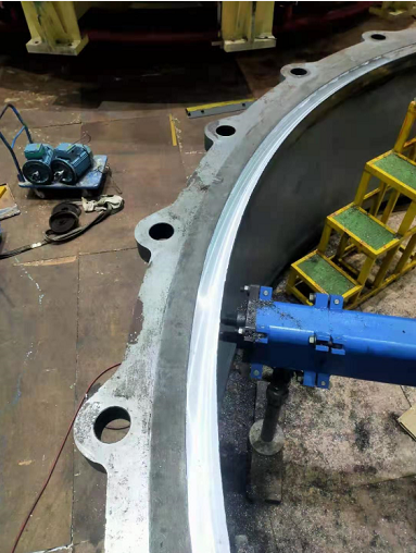 彭水電站壩址位于重慶市彭水縣城烏江上游11公里處的萬足鄉(xiāng)境內(nèi)的長溪河口,控制環(huán)內(nèi)孔直徑6050,控制環(huán)底抗磨板和側(cè)抗磨板嚴(yán)重磨損,修復(fù)加工包含:去除腐蝕部分——補(bǔ)焊——精度修復(fù).