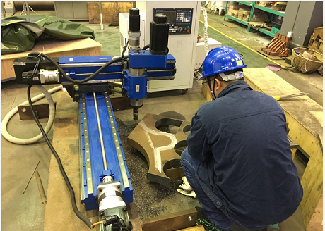 設備具備平面銑削、溝槽銑削、曲線輪廓銑削、鉆孔等加工能力,滿足水電站水輪機導葉底平面密封槽現場環(huán)境的加工要求。